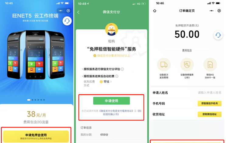 微信POS機信用免押系統是我們在2020年全新推出的一款提供免押租借智能硬件服務的系統。只要用戶的支付分在550分及以上,就可以通過微信進行線上租賃。