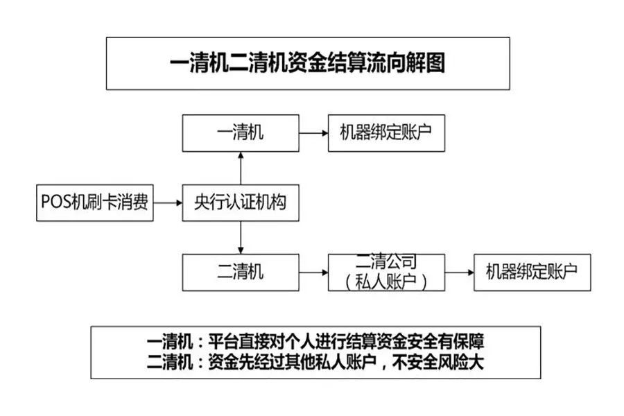 POS二清機:是指商戶的交易資金如果由銀聯清算組織結算再到第三方支付公司清算。具體看銀行卡對賬單的打款方即可辨別。